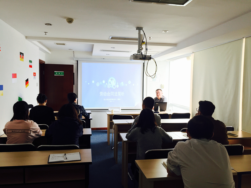 辰品外语•莱茵春天成都德语中心首次老师普法讲座于11月 6日成功举办!此次普法讲座的主题为“劳动合同法简析”,由我校法律顾问王律师主讲。