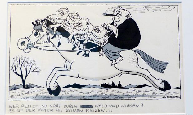 在帝国时代和魏玛共和国,当权者就已成为漫画辛辣讽刺的对象。二战后经历一段相对平和的时期,68年学生运动后,对政治的讽刺更为激烈。在该漫画中,基民盟籍的德国总理基兴格(Georg
